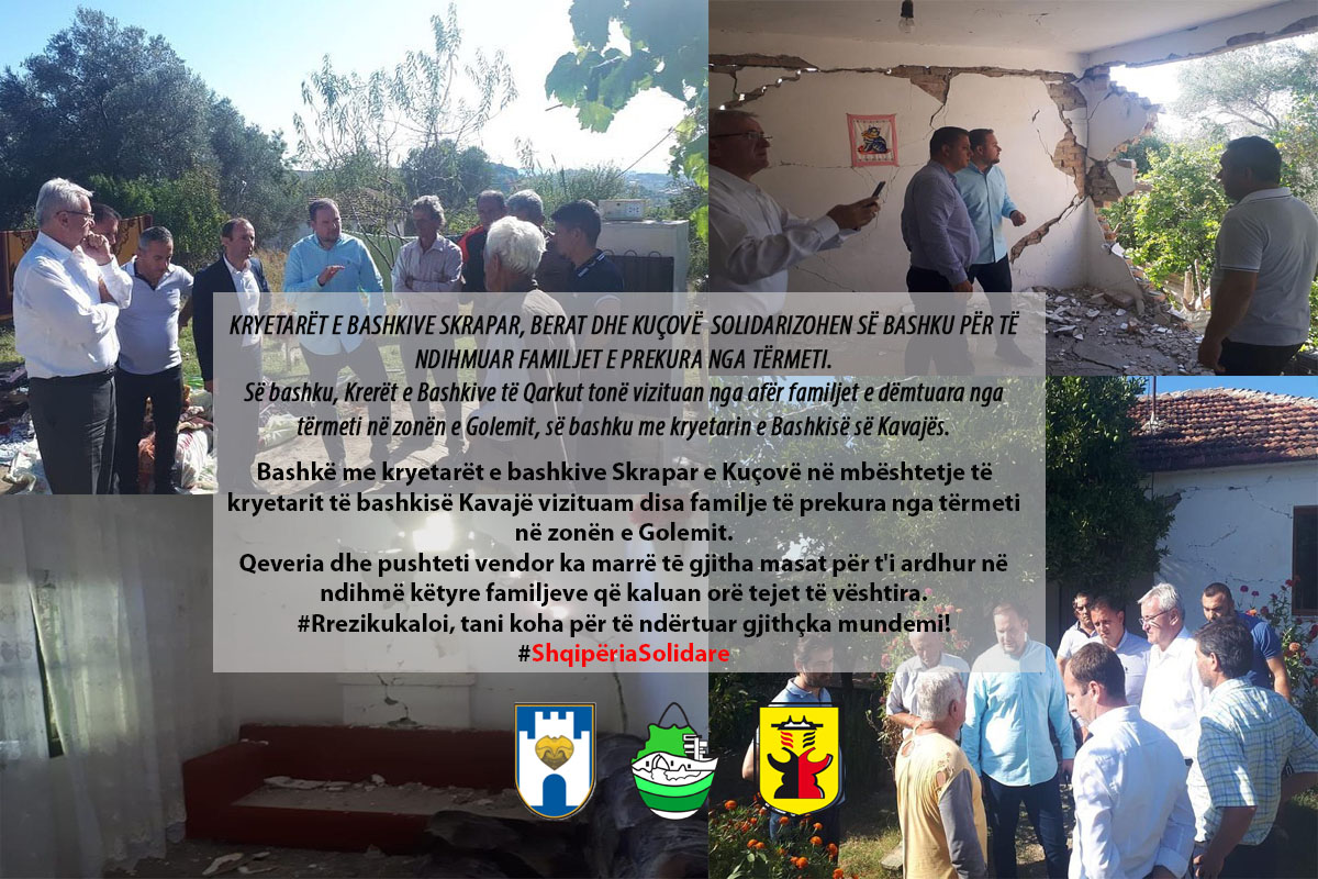 Bashkë me kryetarët e bashkive Skrapar e Kuçovë në mbështetje të kryetarit të bashkisë Kavajë vizituam disa familje të prekura nga tërmeti në zonën e Golemit.