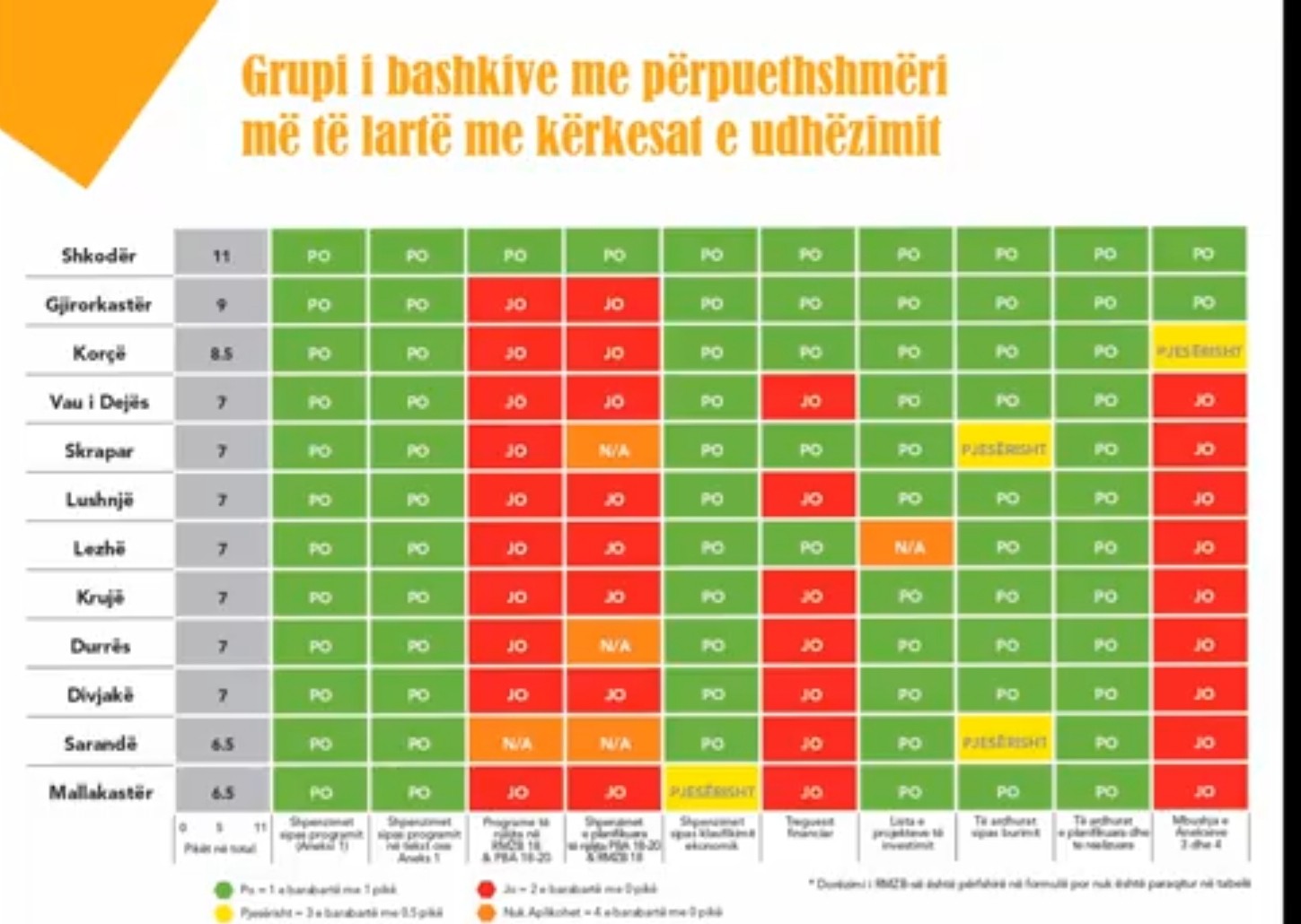 Prezantohet nĂ« TiranĂ« “Raporti i PĂ«rputhshmĂ«risĂ« tĂ« Monitorimit tĂ« PerformancĂ«s nĂ« Nivel Bashkie” – Bashkia e Skraparit nĂ« vendin e 5-tĂ«